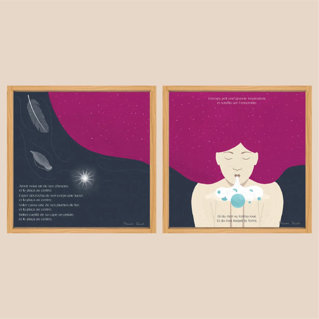 Nymphes créant le monde, pêcheurs réparant leurs filets, ciels étoilés… Ces dessins colorés et poétiques seront parfaits pour décorer les chambres des enfants… et des grands enfants !